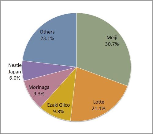 Nikkei press estimated 2013 chocolate market share in Japan. According to it, the total amount 326 billion yen (2.7 billion dollars, 2.2 billion Euro) of chocolate were sold in 2013. 2013 sales were increased by 1.6% from 2012.The top supp…