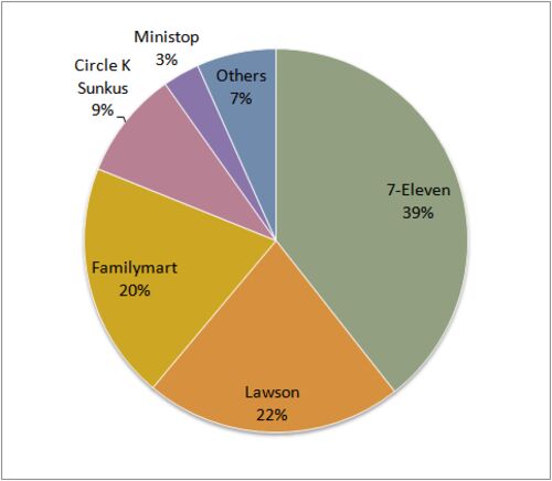 Nikkei newspaper group estimated the 2015 convenience store market share in Japan. According to it, 7-Eleven is the largest chain in Japan. Figure : Convenience Store Market Share in Japan, 2015 Chain Market share (%) 7-Eleven 39.4 Lawson …