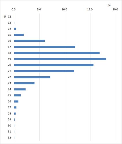 In every April, students are measured their heights and weights at school. The government collects those data and publishes them each year. Here are the 2015 data on the distribution of 5 year-old girls' weights. Figure: Distribution of 5 …