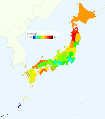 In Japan, 370,346 persons died by cancer in 2015. The following data show the rate of deaths from cancer by prefecture (The number of deaths by cancer per million). Figure: Rate of Deaths from Cancer by Prefecture in 2015 The death rate is…