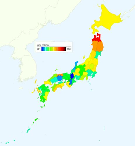 In Japan, 15361 persons died by rectum cancer in 2015. The following data show the rate of deaths from rectum cancer by prefecture (The number of deaths by rectum cancer per million). Figure: Rate of Deaths from Rectum Cancer by Prefecture…