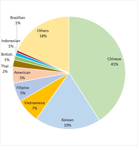 The following data show foreign resident populations by their nationality in Hokkaido. It is the 2015 national census data. Total 21676 foreign residents lived in Hokkaido in 2015. Nationality Population Chinese 8878 Korean 4089 Vietnamese…