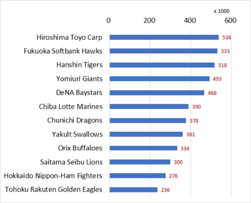 The table below shows 2020 season's attendance figures of NPB. This season, due to the corona virus, the number of games has been reduced to 120 (usually 140 games). In addition to that NPB played games without spectators between the openi…
