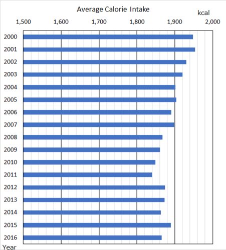 Ministry of Health, Labour and Welfare conducts the national nutrition survey every year. According to the survey, the average daily calorie intake of a Japanese person in 2016 was 1,865 kcal. The following data show the changes in daily c…