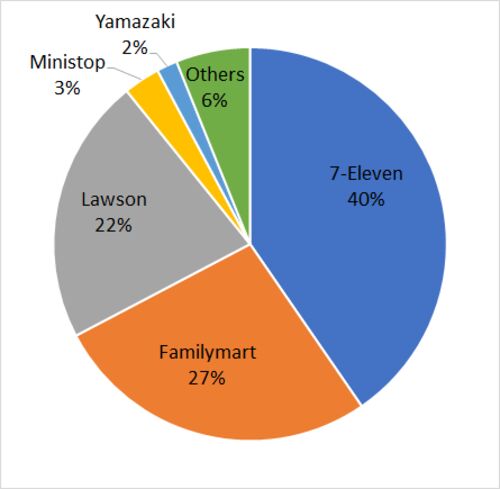 Nikkei newspaper group estimated the 2016 convenience store market share in Japan. According to it, 7-Eleven is the largest chain in Japan. Figure : Convenience Store Market Share in Japan, 2016 Chain Market share (%) 7-Eleven 40.4 Familym…