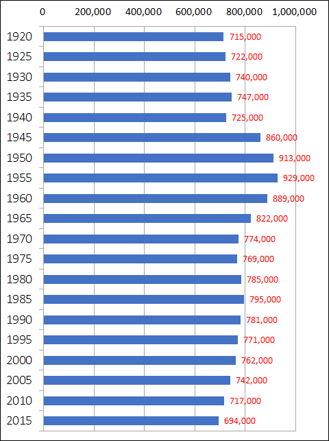 | 1950 | 913,000 |