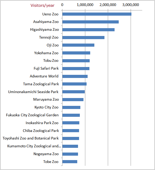 | 1 | Ueno Zoo | Tokyo | 3,028,386 |